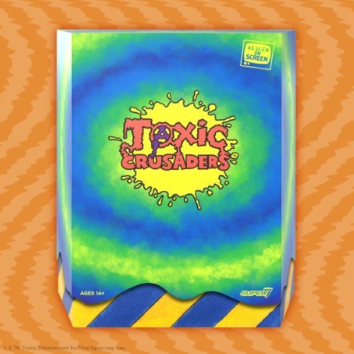 From Super7. It's Toxie, like you've never seen him before! With translucent green glow-in-the-dark injection and UV reactive color changing paint, this ULTIMATES! figure will have three different looks, as if Toxie is reacting to climate change! His standard appearance features bright neon paint, and in sunlight, Toxie will almost instantly change to an angry red! In the dark, he will glow a menacing green! The Radioactive Red Rage Toxie ULTIMATES! figure comes with interchangeable heads and accessories, including a belt with grenades, a mop with a clip-on flag, and a translucent orange Toxic Crusaders branded shield. This ULTIMATES! figure comes packaged in a deluxe slip-case style box.