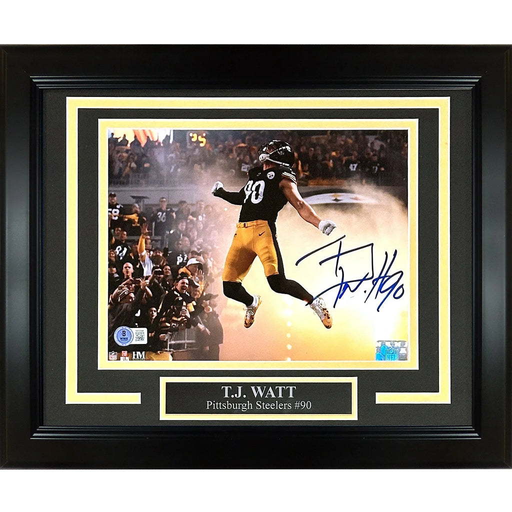 Own a piece of history with this autographed TJ Watt Pittsburgh Steelers 8x10 photo, framed and certified by Beckett. Show off your team spirit and add a valuable collectible to your home or office. A must-have for any fan of the legendary Steelers linebacker. Limited quantities available!