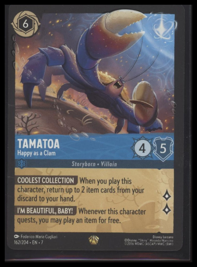 Card Number: 159/204 Category: 183454 Category: Collectible Trading Cards Condition: Near mint or better Player/Character: Tamatoa Rarity: Super Rare Set: The First Chapter Type: Collectible Card Game Year: 2023