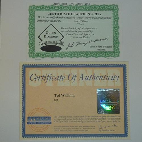 Own a piece of baseball history! This Ted Williams Autographed Louisville Slugger Bat is a must-have for any true fan. The bat features the iconic Green Diamond logo and comes with a certificate of authenticity from Steiner, ensuring its value. Add this rare piece to your collection today!