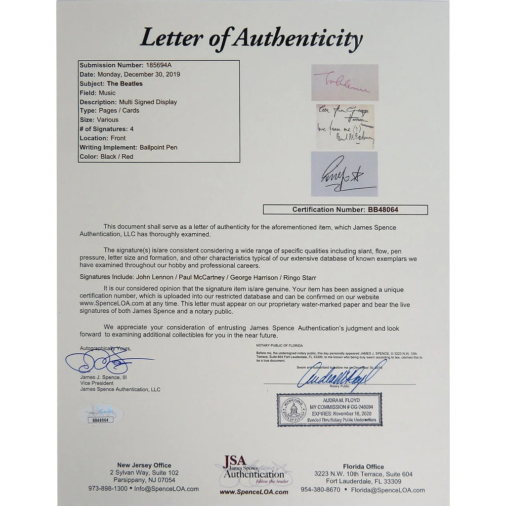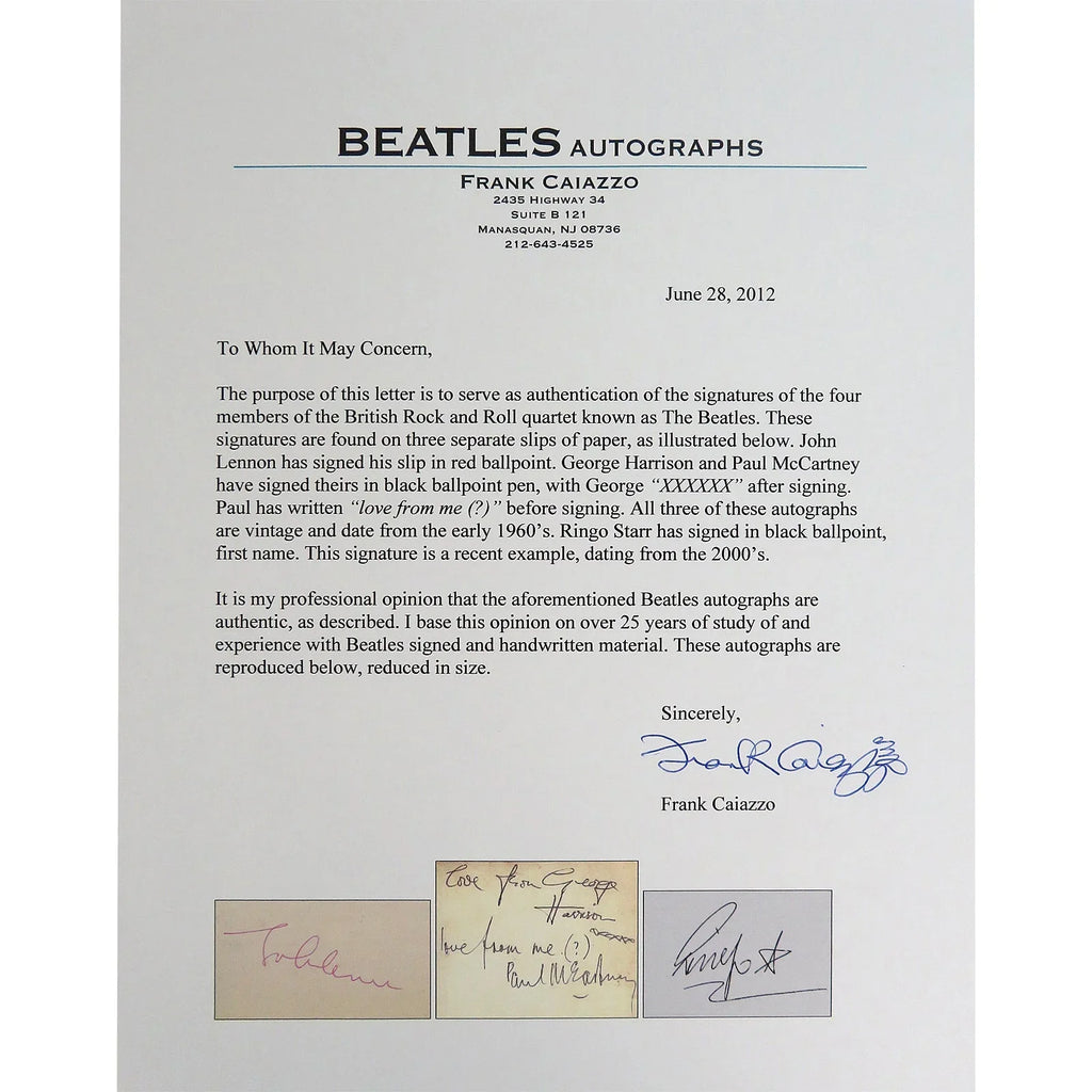 Signatures Include: John Lennon, Paul McCartney, George Harrison & Ringo Starr