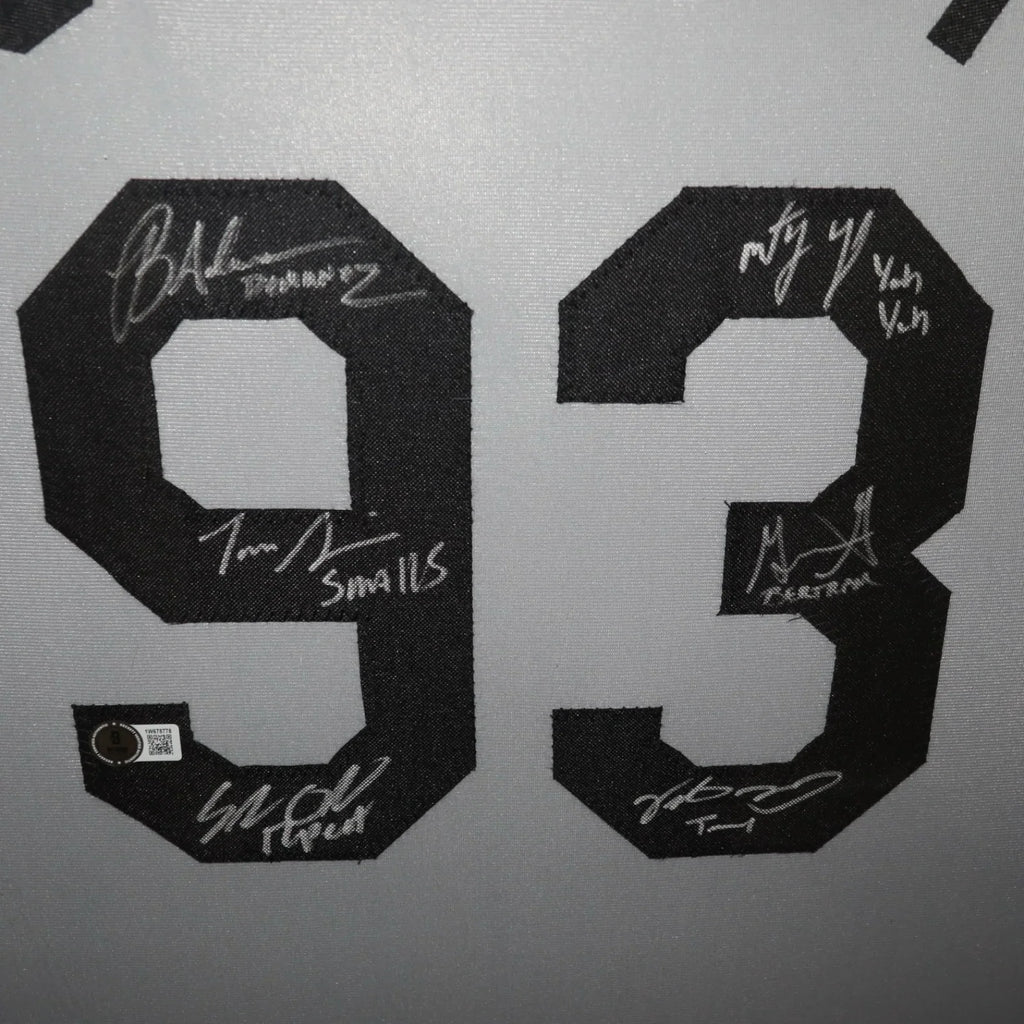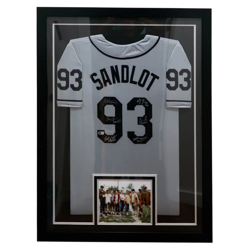 Get your hands on the ultimate fan collectible - The Sandlot Cast Autographed Custom Baseball Jersey! This unique grey #93 jersey features 6 signatures from the beloved movie's cast and comes certified by Beckett. Show off your love for the film with this one-of-a-kind piece. Limited quantities available!