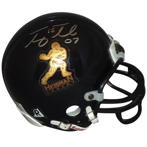 Celebrate the legend of Tim Tebow with this autographed Heisman Trophy logo mini helmet! Featuring his signature and "07" inscriptions, this helmet comes with a Tebow hologram for authenticity. Perfect for any fan or collector, bring home a piece of history and display your passion for football!