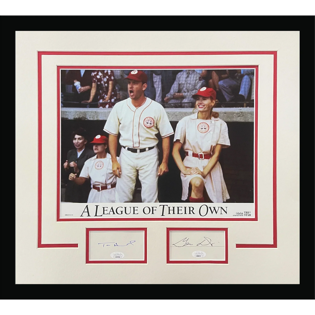 Own a piece of cinematic history with this deluxe framed "A League of their Own" piece signed by Hollywood legends, Tom Hanks and Geena Davis. Guaranteed authentic by JSA, this stunning piece will make a perfect addition to any collection. Don't miss out on this rare opportunity!