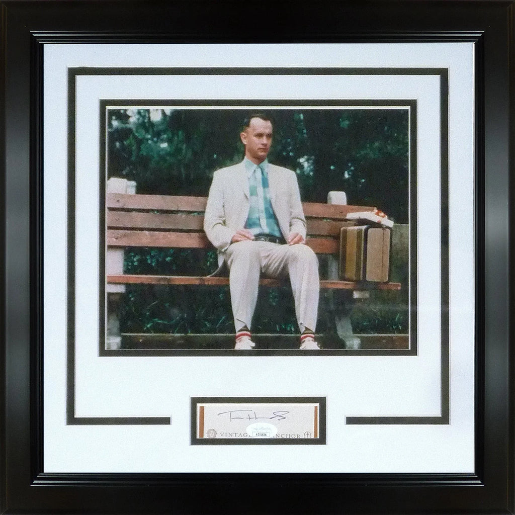 Experience the magic of Forrest Gump with this Tom Hanks autographed frame. Featuring an 8x10 photo and his signature, this JSA authenticated piece is a must-have for any movie buff. Relive your favorite moments with a touch of authenticity.
