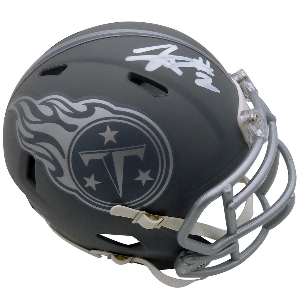 Enhance your sports memorabilia collection with this unique Tyjae Spears signed Tennessee Titans Mini Helmet! The sleek slate alternate design adds a touch of style, and the Beckett authentication guarantees the authenticity of this coveted item. Let everyone know you're a true fan and show your appreciation for Tyjae Spears with this unique mini helmet.