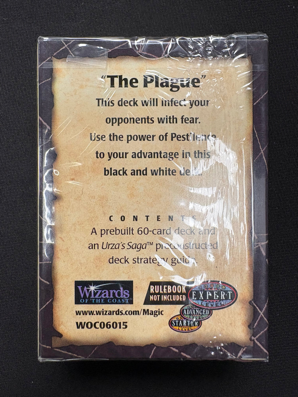 a classic urza’s saga 60-card precon, “the plague” is a bw control shell that abuses pestilence while you stay upright behind lifegain, protection, and damage reduction (urza’s armor + worship/pariah shenanigans). released oct 12, 1998.