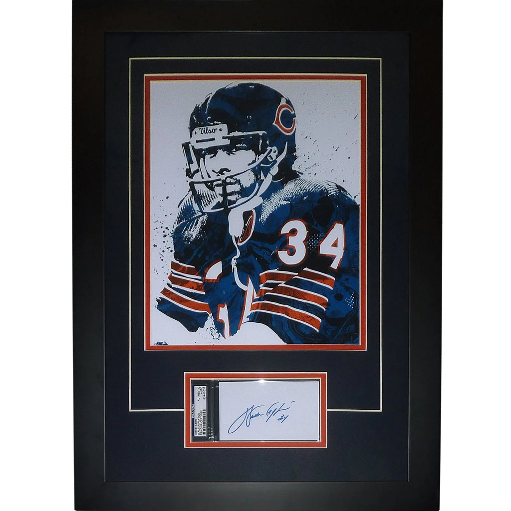 This incredible piece features an original signature from Chicago Bears Hall of Famer Walter Payton. It has been authenticated by Beckett and deluxe framed under an 11x14 Splash Artwork. Each signature is witnessed by a member of our staff or comes out of a private signing.