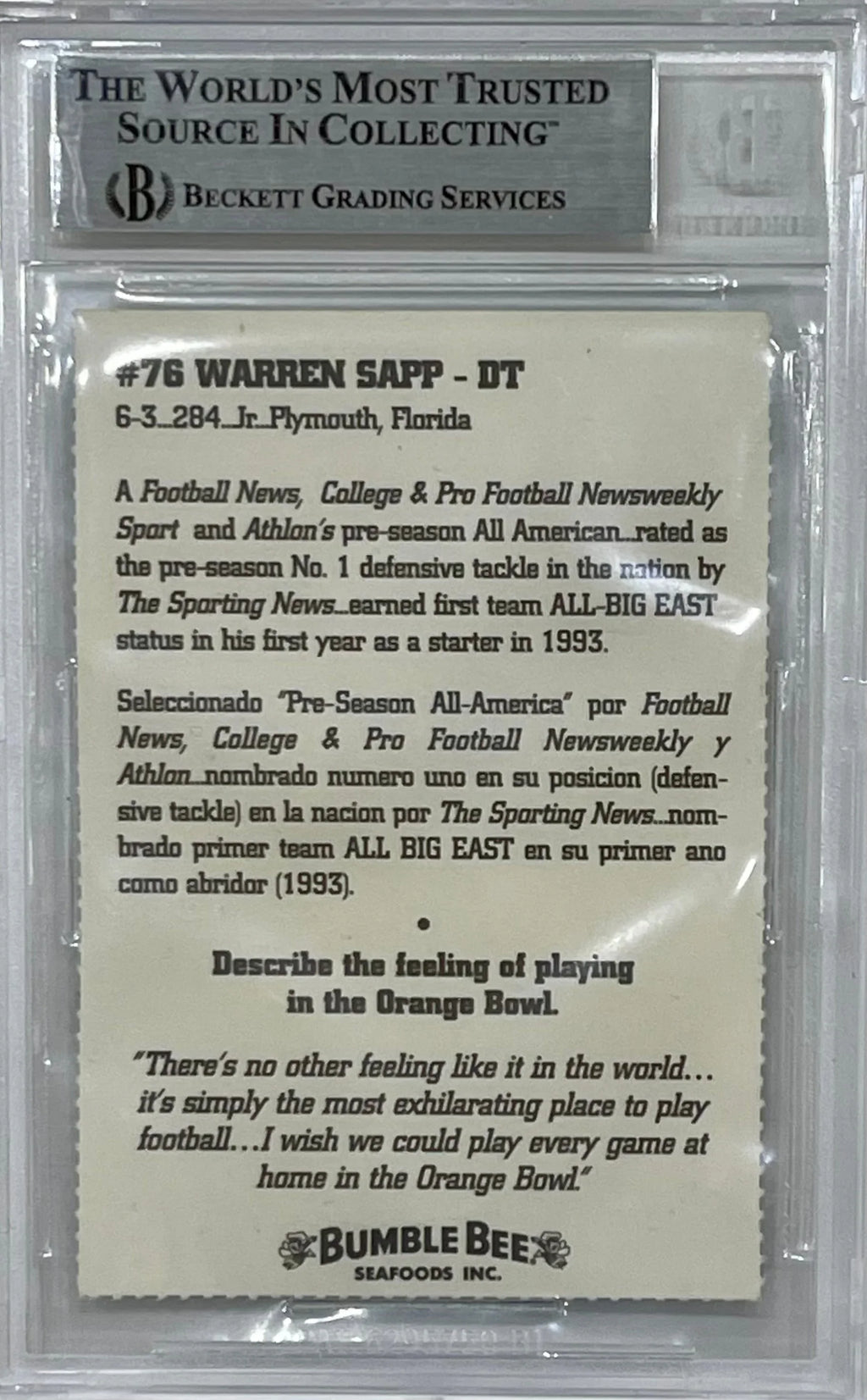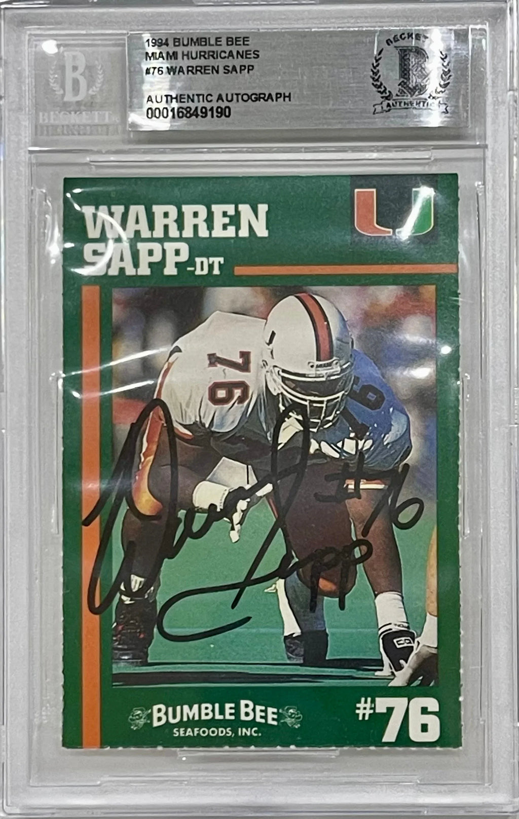 Warren Sapp Autographed 1994 Miami Hurricanes Bumble Bee Card - Beckett