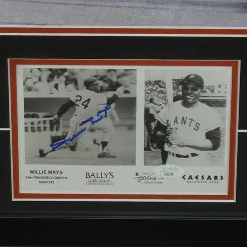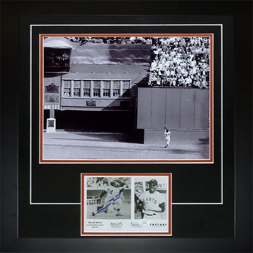 Own a piece of baseball history with this Willie Mays autographed framed photo, featuring his iconic catch from the 1954 World Series with the New York Giants. The deluxe frame and JSA authentication make this a must-have for any passionate fan and collector. Limited availability, act fast!