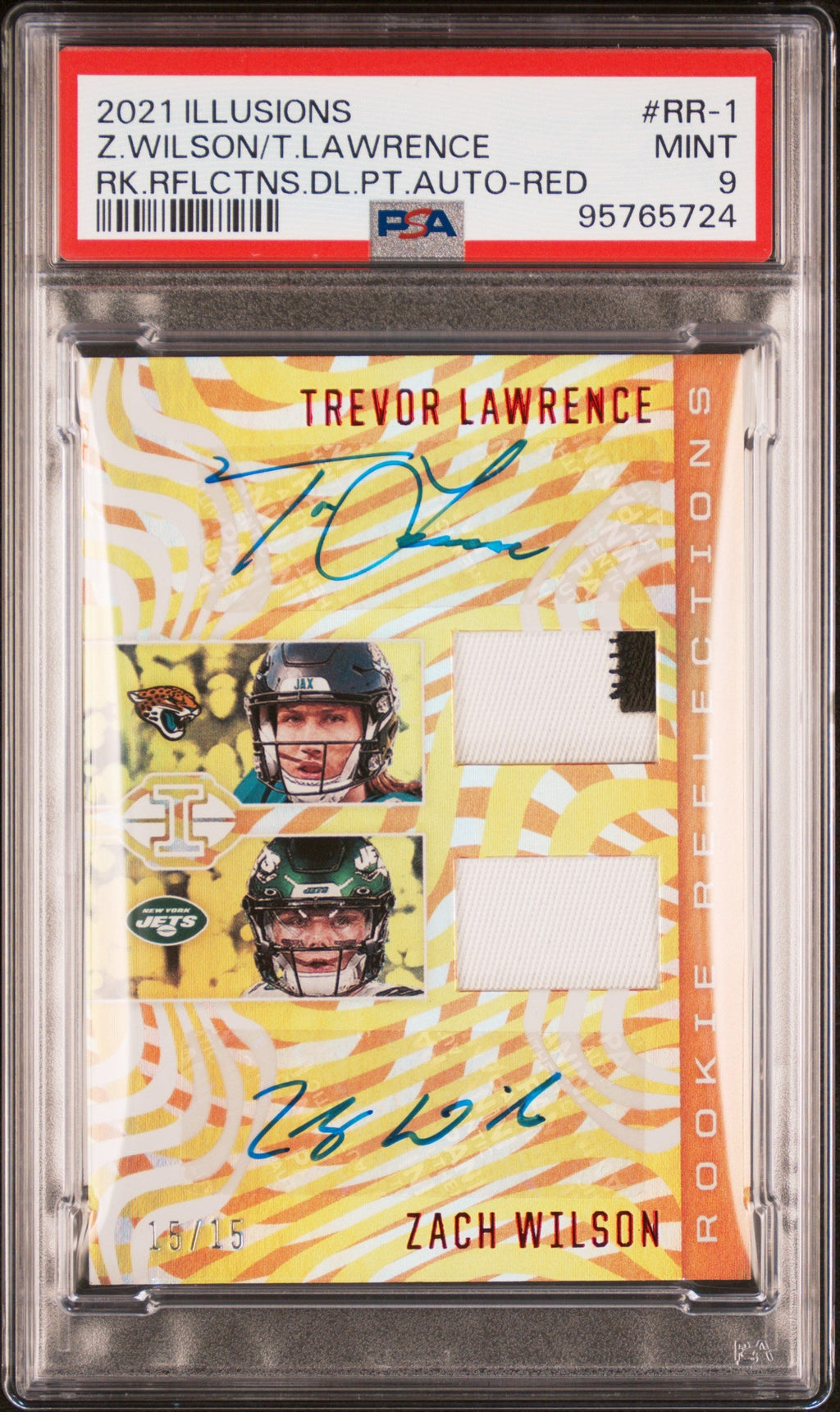 Card Number: RR-1 Category: Collectible Trading Cards Condition: Mint Set: 2021 Panini Illusions Rookie Reflections Dual Patch Autographs Type: Sports Trading Card Year: 2021 Grade: PSA 9 Certification #: 95765724