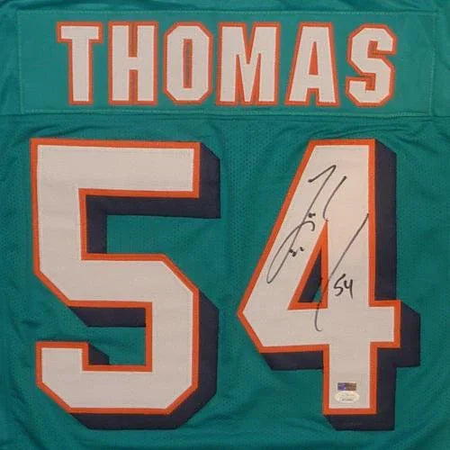 Get ready to show off your love for your favorite football team with this autographed Miami #54 custom jersey! Featuring the signature of legendary player Zach Thomas, this jersey is the perfect addition to any fan's collection. Plus, it comes with a JSA authentication to guarantee its authenticity. Score a touchdown with this must-have jersey!